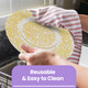 Using the charger plates not only help decorate a table, but can also protect it from hot food and spillages. They can also be used as serving plates or presentation plates for small decorative items.