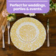 This beautiful round glass charger plate will add a touch of elegance and luxury to any dinner table.