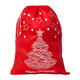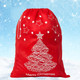 - MERRY CHRISTMAS: The front of the Santa sack features a vibrant red background with a beautifully printed Christmas tree in the centre, adorned with stars and the cheerful "Merry Christmas" text in white at the bottom. This festive and eye-catching design incorporates classic Christmas elements in white against the red backdrop, making it a charming addition to your holiday décor.