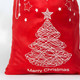 - MERRY CHRISTMAS: The front of the Santa sack features a vibrant red background with a beautifully printed Christmas tree in the centre, adorned with stars and the cheerful "Merry Christmas" text in white at the bottom. This festive and eye-catching design incorporates classic Christmas elements in white against the red backdrop, making it a charming addition to your holiday décor.