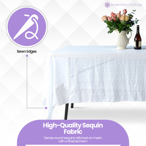 Our sequin party tablecloths are perfect for elevating the decorations of any space and event such as weddings, Christmas, etc.