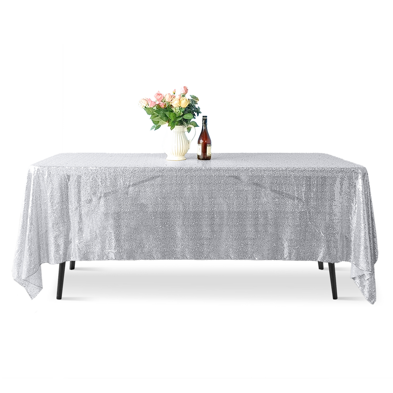 Sequin Rectangle Sparkly Tablecloth - Silver