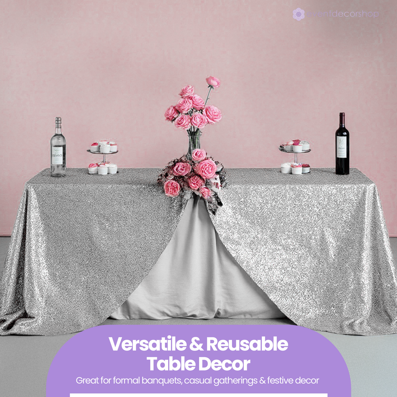 Our sequin party tablecloths are perfect for elevating the decorations of any space and event such as weddings, Christmas, etc.