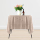 This tablecloth is made from a single piece of fabric, giving it a seamless design that drapes across the table without any lumps or ridges. It is expertly finished with folded and hemmed edges that not only look elegant but also ensure they do not fray