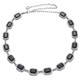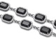 This EventDecor belt is made of silver metal with striking black diamante gemstones. These striking diamante jewels are lined with diamnate rhinestones to add a bright sparkle to the chain.