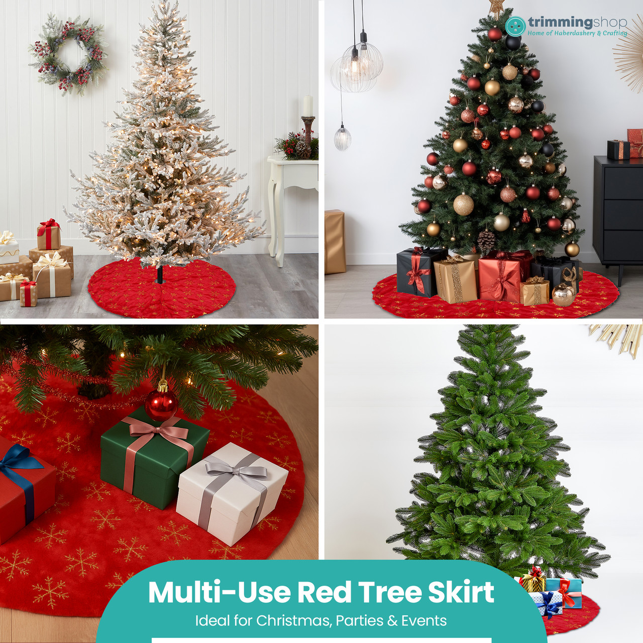 Made from luxurious red velvet, the skirt features delicate gold snowflake embellishments that shimmer under Christmas lights. Its plush texture complements both traditional and modern décor, giving your tree an elegant, refined finish.