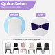 No tying required—simply slide the elastic chair band over the chair back and adjust for a centred, secure hold. The buckle locks in place instantly, allowing decorators, venues, and DIY event planners to achieve professional results in seconds.