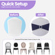 No tying required—simply slide the elastic chair band over the chair back and adjust for a centred, secure hold. The buckle locks in place instantly, allowing decorators, venues, and DIY event planners to achieve professional results in seconds.