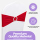 No tying required—simply slide the elastic chair band over the chair back and adjust for a centred, secure hold. The buckle locks in place instantly, allowing decorators, venues, and DIY event planners to achieve professional results in seconds.