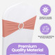 No tying required—simply slide the elastic chair band over the chair back and adjust for a centred, secure hold. The buckle locks in place instantly, allowing decorators, venues, and DIY event planners to achieve professional results in seconds.