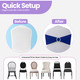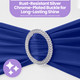 No tying required—simply slide the elastic chair band over the chair back and adjust for a centred, secure hold. The buckle locks in place instantly, allowing decorators, venues, and DIY event planners to achieve professional results in seconds.