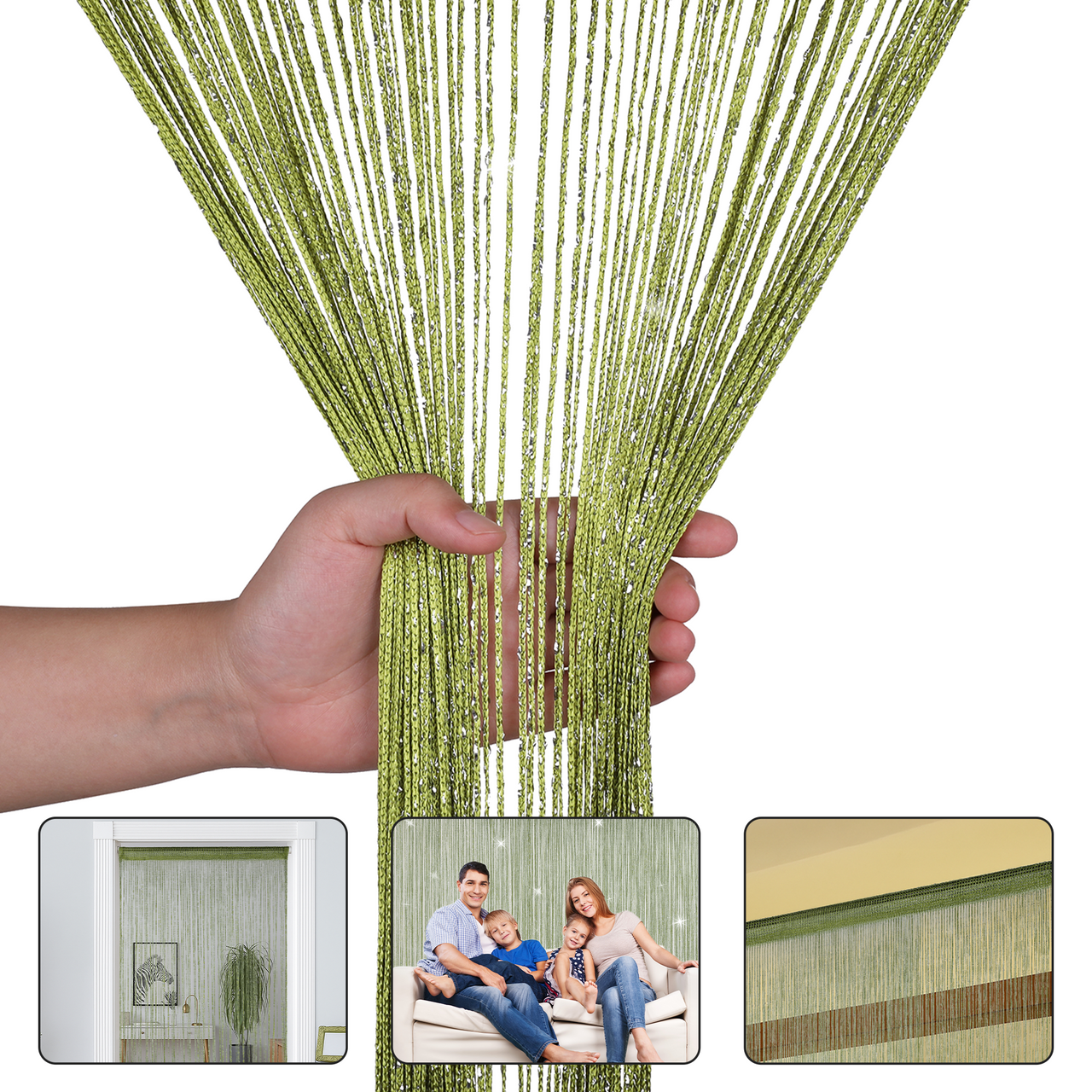 This glittering fabric string curtain does not entirely block the light, keeping the room adequately illuminated while also restricting dust & flies.