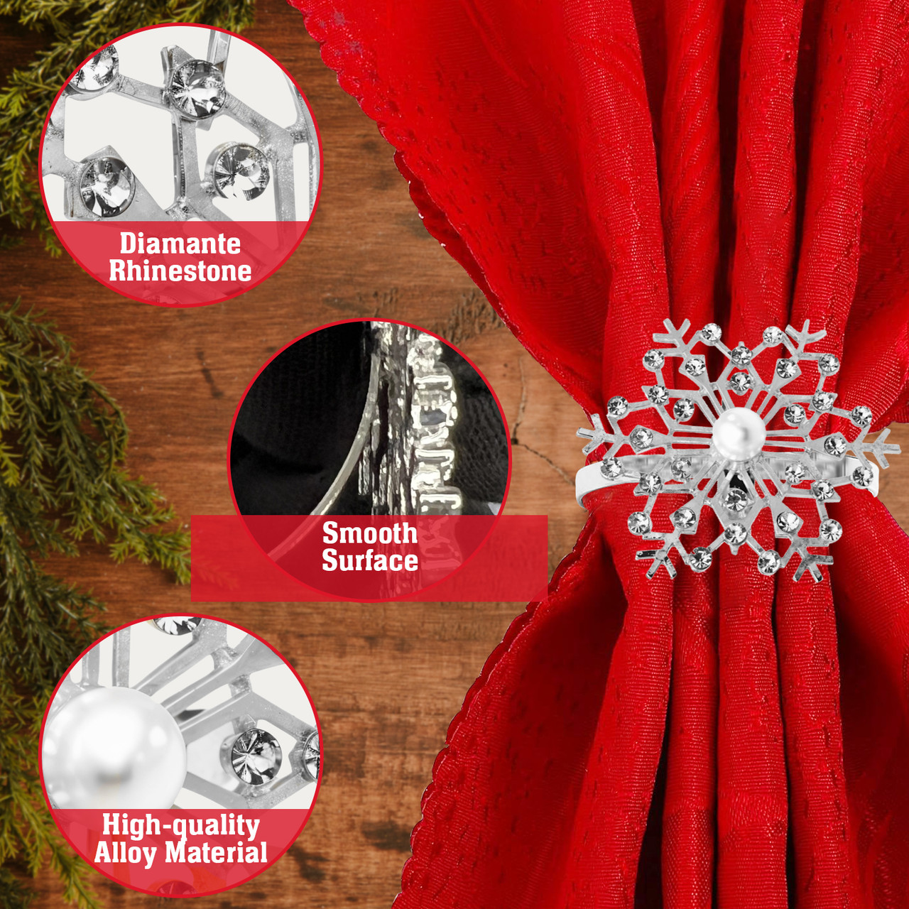 Product: Christmas Napkin Rings – Sunburst Design with Pearl & Diamante