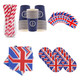 British Union Jack flag-printed party tableware set is made from premium quality paper material. These all items come in elegant vibrant blue, white & red colours that instantly lift the décor of your space and add a charming opulence to the ambiance of your event.