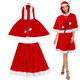 Classic Mrs. Claus velvet costume featuring a hooded cape and flared skirt. Comfortable, stylish, and perfect for festive gatherings, charity events, and Christmas photos.