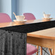 The rich, velvety texture of the table runner adds a touch of luxury to your table settings, creating an ambiance that's both opulent and inviting. Whether you're aiming for a classic, modern, or extravagant theme, the deep black hue effortlessly complements any event décor.