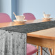 The rich, velvety texture of the table runner adds a touch of luxury to your table settings, creating an ambiance that's both opulent and inviting. Whether you're aiming for a classic, modern, or extravagant theme, the stunning silver hue effortlessly complements any event décor.