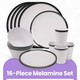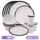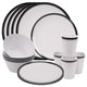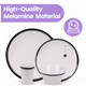 Enhance your dining with this 16-piece melamine dinner set, crafted from high-quality melamine that is lightweight, robust, and break-resistant. Featuring a classic black rim on a crisp white base, it offers a timeless monochrome style. Elegant and modern, this clean design works beautifully for everyday meals, formal settings, or stylish outdoor entertaining.