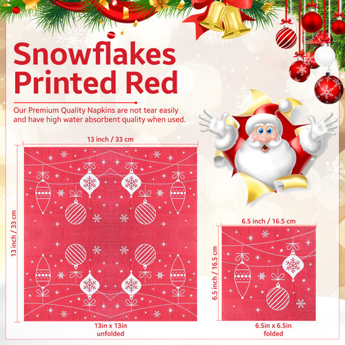 - [DISPOSABLE CHRISTMAS NAPKINS]: These decorative disposable paper napkins have a size of 6.5" x 6.5" (16.5cm x 16.5cm) - folded size. Unfolded size is 33cm x 33cm. These napkins come in a pack of 20pcs. Ideal for holiday party decoration. Enhance your dining experience with these beautiful Christmas napkins & set the scene for a meal to remember