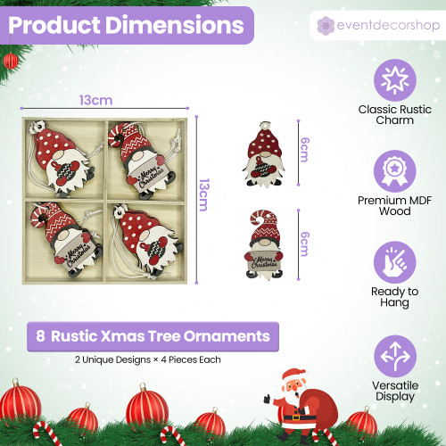 The set includes eight wooden Christmas ornaments—four Santa Claus designs and four Christmas tree designs. Reusable and neatly finished, they are a delightful addition to your festive décor collection, blending rustic charm with joyful seasonal colours.