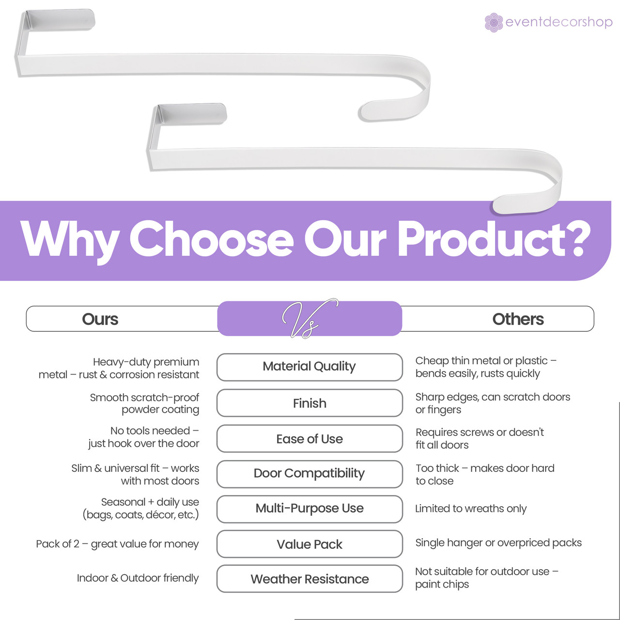 Pack Includes: 2 metal wreath door hangers.