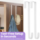 No drills, nails, or screws are needed - simply place the hanger over any standard interior or exterior door. Its slim profile allows the door to close smoothly without marks or damage, making it an excellent choice for renters and homeowners seeking a quick, tool-free setup.